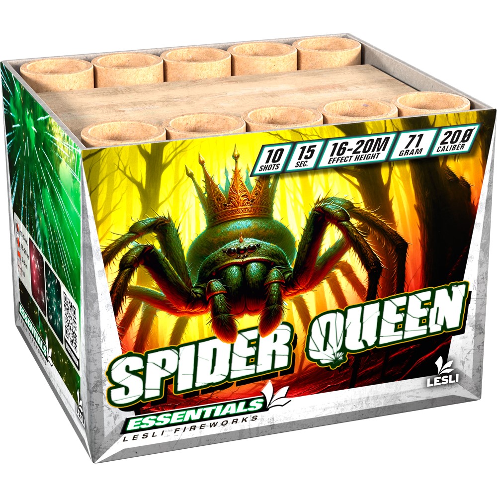 Spider QueenDiese 10 Schuss Batterie lässt selbst Spiderman staunen: Silberne Spinneneffekte, die in rotem und grünem Glitzer enden – wie ist das denn möglich? |