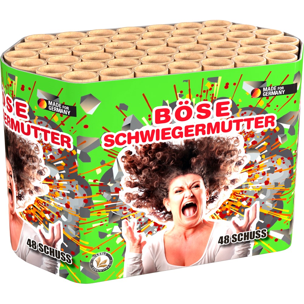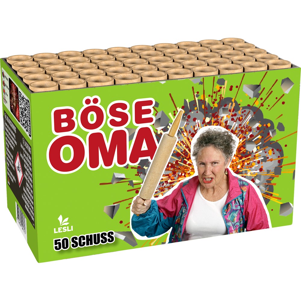Böser OpaEine verrückte Batterie mit einer Vielzahl von Effekten die in 25 Schüssen in den Himmel geschossen werden. Hergestellt nach der hochmodernen Pyromould®-Technologie Kaliber 25mm |
