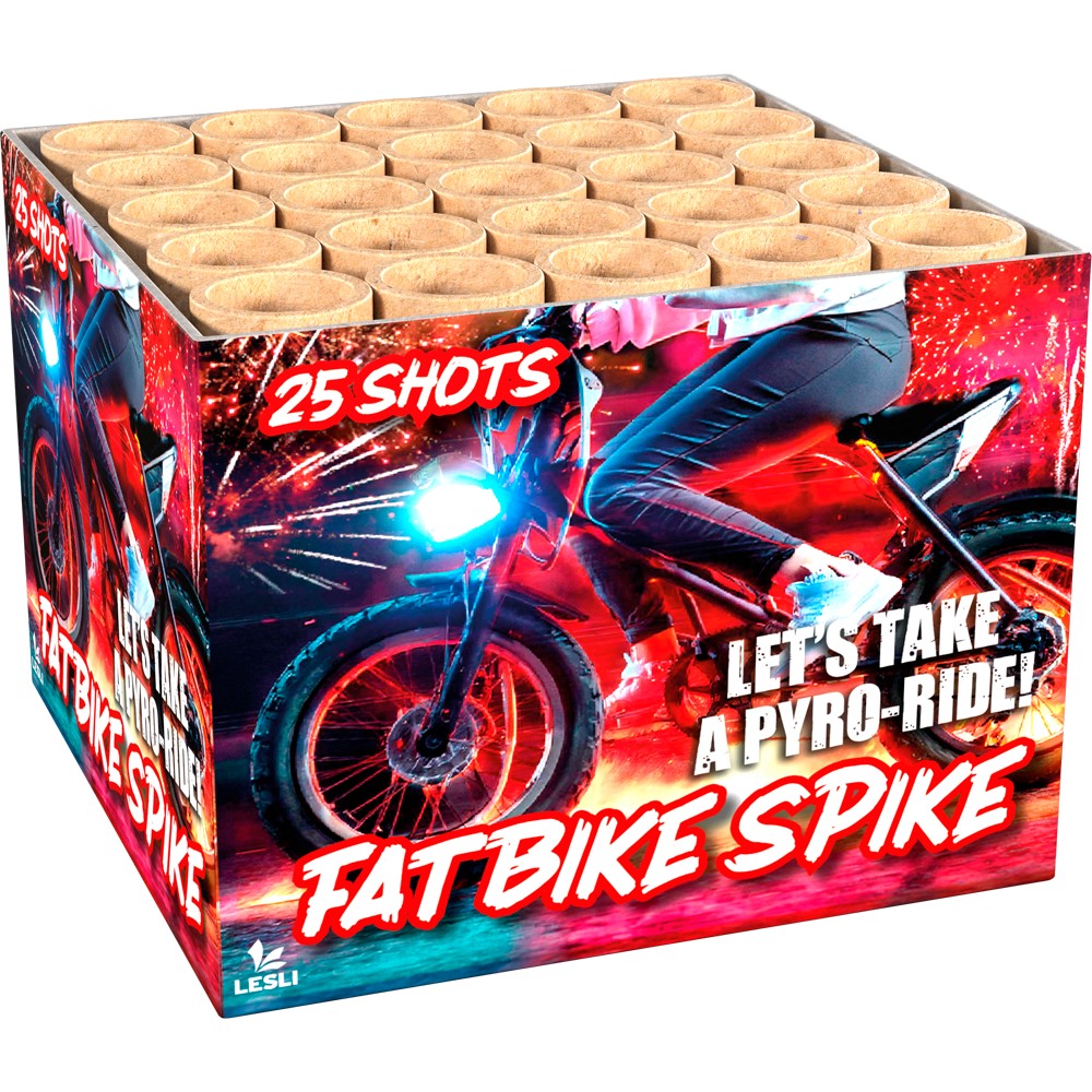 Fatbike SpikeSuchst du nach einer Batterie, die deine Party auf die nächste Stufe hebt? Mache eine Fahrt mit dem Fatbike Spike! Mit 25 Schüssen aus goldenen Willows und leuchtenden Farben ist diese Batterie die perfekte Wahl für dein Silvesterfeuerwerk. |