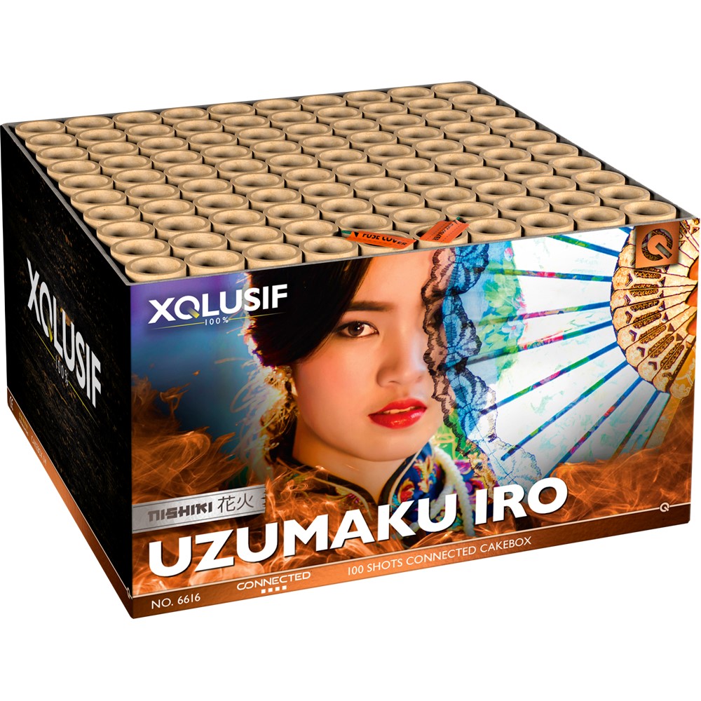 Uzumaku IroKaum vorstellbar, aber diese 100-Schuss-Box schießt wirklich Mega-Bouquets und die verzögernden Farb-Nishiki-Kugeln lassen das wie ein Profi-Feuerwerk aussehen. Und das könnte in deiner Straße sein. Das Finale ist gigantisch! |